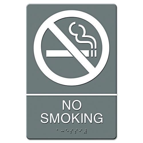 Universally and easily recognizable white graphics. Raised tactile graphics with Grade 2 Braille. Meets Americans with Disabilities Act (ADA) requirements. Includes double-side adhesive tape for mounting to door or wall.