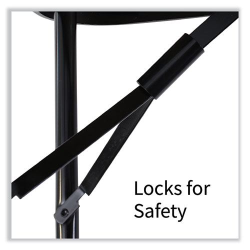 • Heavy-duty, lightweight, blow-molded plastic tabletop—waterproof, scratch- and stain-resistant.