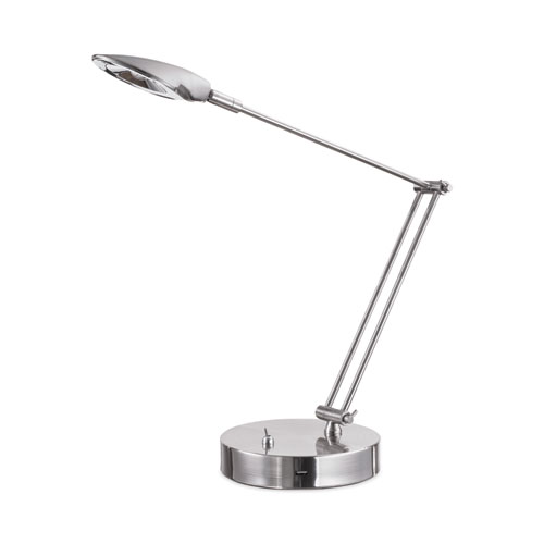 Sleek stylish look meets modern convenience in this adjustable swivel LED task lamp. Integrated USB port to charge up most devices. Contemporary three-point architect neck adjusts height and position easily to meet any lighting needs. Weighted base provides stability.