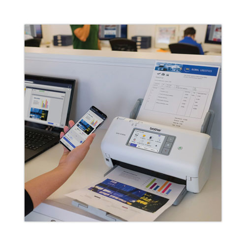 The Brother ADS-4700W Professional Desktop Scanner is designed for the way work now works providing easy integration with existing workflows, versatile scan-to destinations, and improved productivity. Equipped with fast, two-sided scanning up to 40 ppm to help maximize workgroup productivity. Quickly scan via the 80-page capacity auto document feeder. The 4.3″ color touchscreen display offers easy menu navigation and the ability to create up to 56 customizable shortcuts for one-touch scanning. Offers Triple Layer Security features to help limit document and device access and protect against network intrusions. Provides wide driver support for compatibility with existing software applications and document management systems. Enables scanning to a variety of cloud applications and is equipped with a powerful bundled software suite to create, edit, and convert scanned documents into a wide variety of file formats. Features built-in wireless and Ethernet network interfaces to easily set up and share on your wired or wireless network or scan to your mobile device.