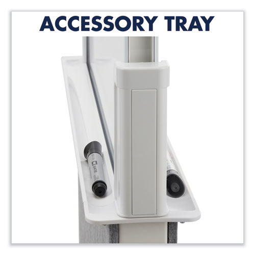 Use the Quartet® Agile Easel for team collaboration. The top of the easel has double-sided glass boards for writing and brainstorming, while the bottom has dual-sided polyester panels to help provide more privacy. Place this portable easel in small, open-concept rooms to create private, interactive workspaces. Double-sided dry-erase surfaces give you more space to write and collaborate. Non-porous glass board is easy to clean and resists stains and ghosting. Adjust the height of the easel up to 60.5, or collapse it down to 41 for storage. Wheels make it simple to move easel from one room to the next and lock in place when ready for use. Glass whiteboard measures 25.5 x 28.88. Full easel measures 27.5 x 60.5. Comes with two accessory trays and one dry-erase marker.