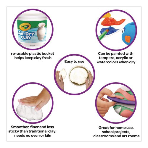 Crayola Air Dry Clay allows your little ones to create fun and imaginative shapes with ease. This soft modeling material can either be reused or air dried to preserve your creation. No baking is ever required. Smoother, finer, and less sticky than traditional clay, this Crayola modeling clay is perfect for group activities. You can even soften the clay with water if needed, allowing kids to enjoy hours of fun making and re-making favorite creations. Once your child is finished creating, the air dried clay is great for painting.