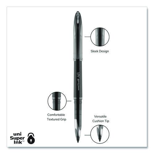 Enjoy a smooth writing experience with AIR Porous Point Rollerball Pens from uni-ball featuring a 0.7 mm medium point. These pens have an innovative sleek tip that writes at any angle while producing crisp, skip-free lines. The porous point rollerball pens adapt to your personal writing grip style, adjusting line widths depending on the pressure of your hand as you write. Combining the fluid ink of a marker with the durability of a rollerball, these pens deliver a smooth writing experience while ensuring your documents are easy to read. Suitable for a variety of writing tasks including journaling, scrapbooking or sketching, these pens glide easily over paper, delivering vibrant marks and lines. uni Super Ink technology ensures the ink adheres strongly to the paper, offering protection from fraud, fading and water. A glass-like plastic clip gives these fine marking pens a stylish look while adding a touch of convenience. Experience effortless writing the moment the pen hits the paper with AIR’s versatile cushion tip technology and fluid, free flowing ink.