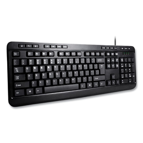 The Adesso Multimedia Desktop Keyboard is built to make handling your daily computer tasks easier. This keyboard features 14 hot keys for quick access to your media player controls, email, Internet browser and other common applications like My Computer, Mail and Calculator. The keyboard uses quiet membrane key switches that provide a more quiet, tactile response. Includes a 6-foot cable and USB connector.
