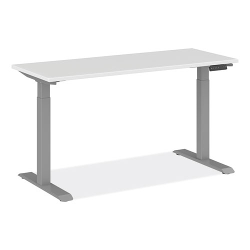 Set the perfect height when sitting or standing, when you choose this electric, three-stage, height-adjustable table. Durable, powder-coated steel base features a 250 lb maximum lift capacity, a 26.13″ lift/lower range (from 21.63″ to 47.75″) 60″ x 24″ table top, as well as a one-touch, four memory setting controller. Dual-motors provide speeds of up to 1.5″ per second (depending on load). Adjustable leveling glides help you compensate for uneven floors. Base includes integrated cable-management channels.