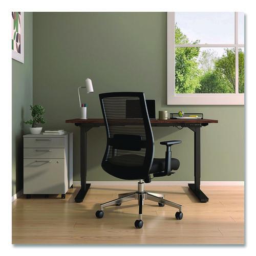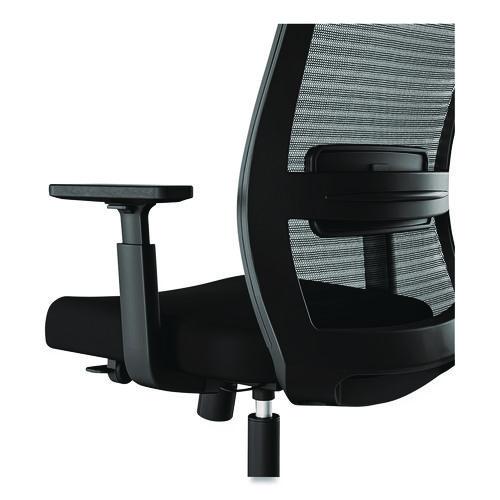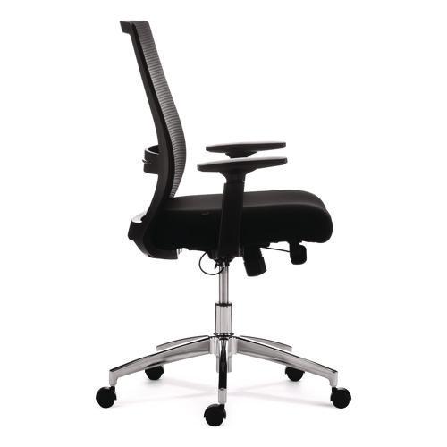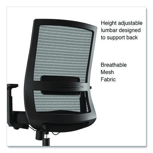 Elevate your workspace with this fabric mesh task chair, delivering exceptional value and functionality. The built-in lumbar support takes its cue from the natural curve of your spine, promoting your ergonomic comfort. The adjustable seat height, padded adjustable arms, and recline and tilt controls ensure an optimal position for maintaining proper posture and comfort throughout your workday. The contoured padded seat and the synchro-tilt cable seat plate provide comfort and support throughout the day. The stylish chrome-finish base is durable and long-lasting, and the mesh back gives you easy airflow, helping you feel cool no matter how many deadlines are pressing. The Alera® Ashdale black mesh and fabric task chair is a great value that’s perfect for your office.