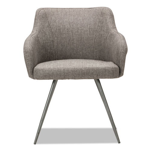 A modern captain’s chair with a commanding style. Make a statement at your desk, in the conference room, or the waiting room. Cushioned seat and back with durable fabric upholstery. Contoured rounded back and arms for the perfect support. Extended seat edge to help reduce pressure points at the back of the knee. Durable metal post legs.