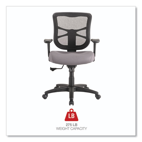 Product Details** Global Product Type Office Chairs Color Family Black Arms Included Yes Pneumatic Seat Height Adjustment Yes Tilt Tension/Tilt Lock Yes Integral Lumbar Support No Seat Surface Material Family Mesh Recommended Application Area(s) General Office & Task Seat Color Gray Back Color Black Arm Type Padded T-Bar Weight Capacity Supports Up to 275 lb Back Height Adjustment Yes Seat Glide Mechanism No Knee Tilt No Synchronized Knee Tilt No Dual-Action Tilt No Posture Lock No Multi-Task Control No Asynchronous Control No Dual-Clutch Posture Control No Variable Synchro-Tilt No Arm Adjustability Height,Width Armrest Color Black Armrest Material Polypropylene,Polyurethane Distance Between Arms 17.17″ to 18.15″ Arm Height From Seat 6.75″ to 9.25″ Overall Width Minimum 24″ Overall Width Maximum 27.76″ Overall Depth Maximum 27″ Overall Height Minimum 37.7″ Overall Height Maximum 44″ Seat Width Maximum 19.6″ Seat Depth Maximum 18.7″ Seat Height Minimum 17.9″ Seat Height Maximum 21.8″ Seat Surface Material Mesh Seat Fill Material Molded Foam Back Width Maximum 15.2″ Back Height Minimum 22.24″ Back Height Maximum 24.8″ Back Surface Material Mesh Back Surface Material Family Mesh Base/Frame Color Black Base/Frame Material(s) Nylon Caster/Glide Details Five 2″ Hooded Dual-Wheel Casters Caster/Glide Surface Texture Hard Product Biodegradability Indicator N Product Biodegradability in Days 0 Product Compostability Indicator N Compliance Standards CAL TB117-2013 Compliant,Meets or Exceeds ANSI/BIFMA Standards Pre-Consumer Recycled Content Percent 0% Post-Consumer Recycled Content Percent 0% Total Recycled Content Percent 0% Disclaimer Statement Casters supplied with this chair are not suitable for all floor types. Country Of Origin TW Carton Weight 51 lbs. Carton Pack Quantity 1 EA Pack Quantity 0 UPC 042167001599 UNSPSC 56101504 Shipping Weight & Item Dimensions Weight 50.71 lbs. Length 26 in Height 16.1 in Width 24.4 in Warranty Manufacturer’s limited five-year warranty.