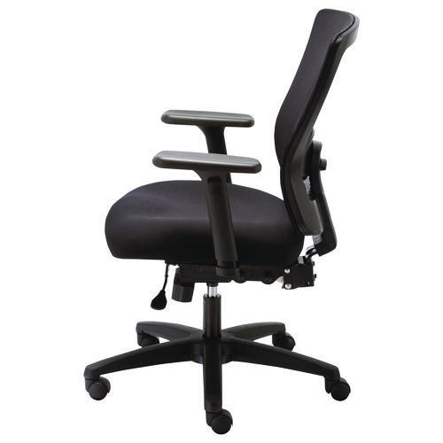This mid-back chair features a crisp visual design and a variety of ergonomic adjustments at an irresistible price. Mesh back offers breathable support and conforms to the natural curvature of the spine. Lumbar adjustment adapts to support the lower back and can be adjusted to satisfy a variety of different users. Adjustable-height and width arms move up and down, as well as, toward and away from the body to adapt to various body sizes. Asynchronous control offers a wide range of movement, assists in spinal alignment and distributes users weight evenly. 360-degree swivel provides easy of movement in any direction. Supports up to 250 lbs.
