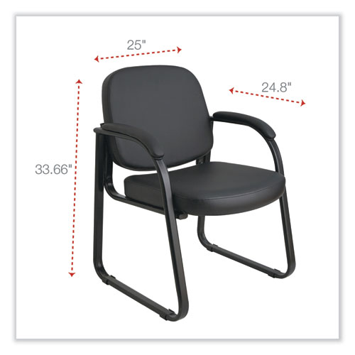 Product Details** Global Product Type Guest & Reception Chairs Color Family Black Arms Included Yes Pneumatic Seat Height Adjustment No Tilt Tension/Tilt Lock No Integral Lumbar Support No Seat Surface Material Family Fabric Recommended Application Area(s) Guest/Reception & Lounge Seat Color Black Back Color Black Arm Type Padded Loop Weight Capacity Supports Up to 275 lb Back Height Adjustment No Seat Glide Mechanism No Knee Tilt No Synchronized Knee Tilt No Dual-Action Tilt No Posture Lock No Multi-Task Control No Asynchronous Control No Dual-Clutch Posture Control No Variable Synchro-Tilt No Arm Adjustability Fixed Armrest Color Black Armrest Material Steel,Vinyl Distance Between Arms 20.88″ Arm Height From Seat 8.75″ Overall Width Maximum 25″ Overall Depth Maximum 24.80″ Overall Height Maximum 33.66″ Seat Width Maximum 20.47″ Seat Height Maximum 17.72″ Seat Surface Material 100% Polyester Back Width Maximum 19.69″ Back Height Maximum 18.11″ Back Surface Material 100% Polyester Back Surface Material Family Fabric Base/Frame Color Black Base/Frame Material(s) Steel Product Biodegradability in Days 0 Compliance Standards CAL TB117-2013 Compliant,Meets or Exceeds ANSI/BIFMA Standards Pre-Consumer Recycled Content Percent 0% Post-Consumer Recycled Content Percent 0% Total Recycled Content Percent 0% Special Features Fabric Country Of Origin CN Carton Weight 30 lbs. Carton Pack Quantity 1 EA Pack Quantity 0 UPC 042167381004 UNSPSC 56112103 Shipping Weight & Item Dimensions Weight 29.76 lbs. Length 26.77 in Height 11.02 in Width 23.23 in Warranty Manufacturer’s limited five-year warranty.