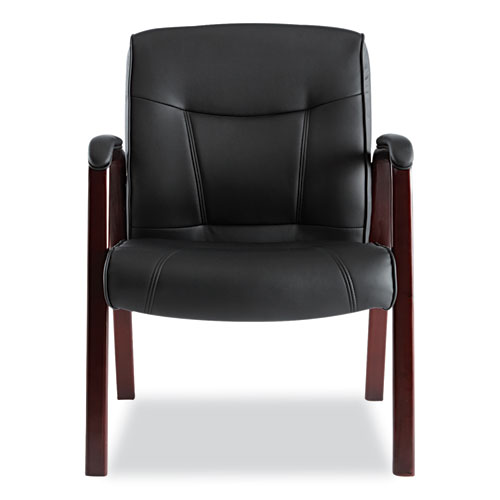 Welcome guests and visitors with an attractive and functional statement chair that feels as good as it looks. Constructed with soft touch, black bonded leather upholstery that’s easy-to-clean. Built with a stylish and durable wood frame for longevity and padded armrests for comfort. The modern style and low maintenance materials make it ideal for lobbies, waiting rooms, or additional office seating.