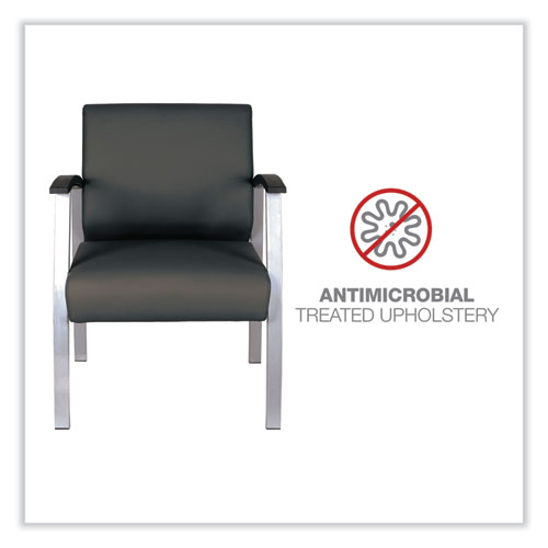 Stylish and flexible design is ideal for additional office seating and waiting areas. Thickly padded seat cushion with waterfall seat design relieves pressure points at the back of the knees. Visible clean-out area between the back and seat prevents dirt and debris build-up. Strong metal frame withstands heavy use and added durability and strength. Wall-saver leg design helps protect against wall damage. Polyurethane arms are both comfortable and long-lasting. Antimicrobial agent added to prevent the growth of germs on the upholstery surface.