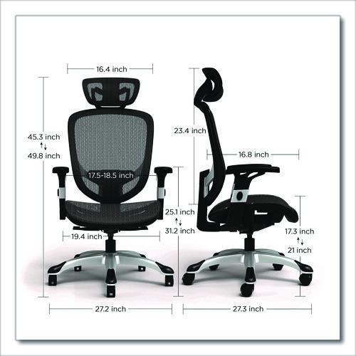 Product Details** Global Product Type Office Chairs Color Family Black Arms Included Yes Pneumatic Seat Height Adjustment Yes Tilt Tension/Tilt Lock Yes Integral Lumbar Support Yes Seat Surface Material Family Mesh Recommended Application Area(s) General Office & Task Seat Color Black Back Color Black Arm Type T-Bar Weight Capacity Supports Up to 275 lb Seat Glide Mechanism No Knee Tilt Yes Synchronized Knee Tilt No Dual-Action Tilt No Posture Lock No Multi-Task Control Yes Asynchronous Control No Dual-Clutch Posture Control No Variable Synchro-Tilt No Arm Adjustability Height Armrest Color Black Armrest Material Nylon Distance Between Arms 17.44″ to 18.46″ Overall Width Maximum 27.17″ Overall Depth Maximum 27.28″ Overall Height Minimum 45.28″ Overall Height Maximum 49.76″ Seat Width Maximum 27.17″ Seat Depth Maximum 16.77″ Seat Height Minimum 17.24″ Seat Height Maximum 20.98″ Seat Surface Material Mesh Back Width Maximum 16.42″ Back Height Maximum 23.43″ Back Surface Material Mesh Back Surface Material Family Mesh Base/Frame Color Silver Base/Frame Material(s) Nylon Caster/Glide Details Five Nylon Casters Caster/Glide Surface Texture Hard Compatible Flooring Type(s) Carpet,Hard Floor Book Box Indicator No Weight (Fully Assembled) 40.34 lbs Product Biodegradability Indicator N Product Biodegradability in Days 0 Product Compostability Indicator N Compliance Standards Meets or Exceeds ANSI/BIFMA Standards Pre-Consumer Recycled Content Percent 0% Post-Consumer Recycled Content Percent 0% Total Recycled Content Percent 0% Country Of Origin VN Carton Weight 40 lbs. Carton Pack Quantity 1 EA Pack Quantity 0 UPC 042167001957 UNSPSC 56101720 Shipping Weight & Item Dimensions Weight 40.352 lbs. Length 27.953 in Height 26.181 in Width 14.173 in Warranty Manufacturer’s limited five-year warranty.
