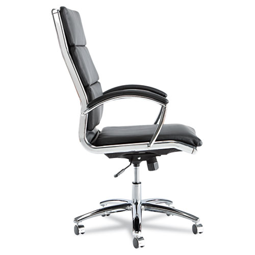 Alera Neratoli High-Back Slim Profile Chair, Faux Leather, 275 lb Cap, 17.32″ to 21.25″ Seat Height, Black Seat/Back, Chrome