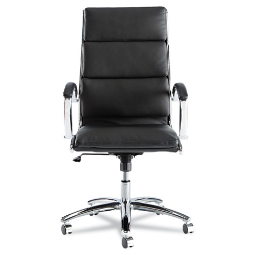 Alera Neratoli High-Back Slim Profile Chair, Faux Leather, 275 lb Cap, 17.32" to 21.25" Seat Height, Black Seat/Back, ChromeAlera Neratoli High-Back Slim Profile Chair, Faux Leather, 275 lb Cap, 17.32″ to 21.25″ Seat Height, Black Seat/Back, Chrome