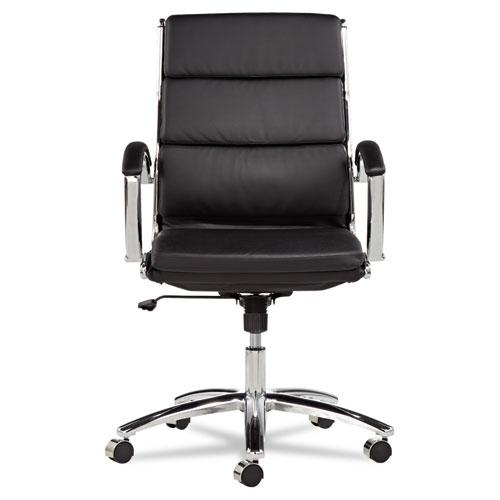 Product Details** Global Product Type Office Chairs Color Family Black Arms Included Yes Pneumatic Seat Height Adjustment Yes Tilt Tension/Tilt Lock Yes Integral Lumbar Support No Seat Surface Material Family Faux Leather Recommended Application Area(s) Conference & Meeting,General Office & Task Seat Color Black Back Color Black Arm Type Arched Loop Weight Capacity Supports Up to 275 lb Back Height Adjustment No Seat Glide Mechanism No Knee Tilt No Synchronized Knee Tilt No Dual-Action Tilt No Posture Lock No Multi-Task Control No Asynchronous Control No Dual-Clutch Posture Control No Variable Synchro-Tilt No Armrest Color Chrome/Black Armrest Material Chrome,Soft Touch Bonded Leather Distance Between Arms 19.88″ Arm Height From Seat 7″ Overall Width Maximum 27.17″ Overall Depth Maximum 28.74″ Overall Height Minimum 39.76″ Overall Height Maximum 43.3″ Seat Width Maximum 19.29″ Seat Depth Maximum 18.5″ Seat Height Minimum 17.72″ Seat Height Maximum 21.85″ Seat Surface Material Stain-Resistant Faux Leather Back Width Maximum 18.11″ Back Height Maximum 22.04″ Back Surface Material Stain-Resistant Faux Leather Back Surface Material Family Faux Leather Base/Frame Color Chrome Base/Frame Material(s) Chrome Caster/Glide Details Five 2″ Hooded Casters Caster/Glide Surface Texture Hard Product Biodegradability Indicator N Product Biodegradability in Days 0 Product Compostability Indicator N Compliance Standards CAL TB117-2013 Compliant,Meets or Exceeds ANSI/BIFMA Standards Pre-Consumer Recycled Content Percent 0% Post-Consumer Recycled Content Percent 0% Total Recycled Content Percent 0% Disclaimer Statement Casters supplied with this chair are not suitable for all floor types. Special Features Stain-Resistant Faux Leather Country Of Origin CN Carton Weight 48 lbs. Carton Pack Quantity 1 EA Pack Quantity 0 UPC 042167392130 UNSPSC 56112102 Shipping Weight & Item Dimensions Weight 47.3 lbs. Length 34.84 in Height 15.94 in Width 25.79 in Warranty Manufacturer’s limited five-year warranty.