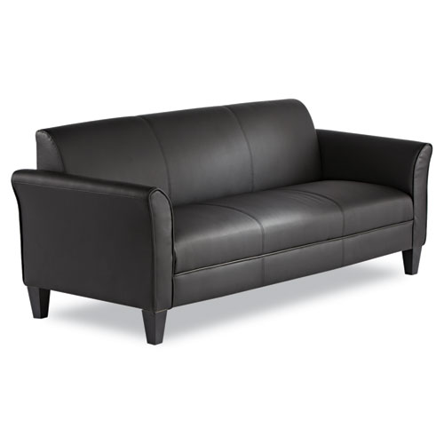 Product Details** Global Product Type Sofas & Couches Series Name Alera® Reception Lounge Sofa Series Color Family Black Individuals Accommodated 3 Seat Surface Material Family Bonded Leather Back Surface Material Family Bonded Leather Base/Frame Material Family Wood Seat Color Black Back Color Black Base/Frame Color Black Overall Width 77″ Overall Depth 31.5″ Overall Height 32″ Overall Weight Capacity 750 lb Seat Width 22″ Seat Depth 20.9″ Seat Height 17.5″ Seat Surface Material Bonded Leather Back Surface Material Bonded Leather Base/Frame Material(s) Wood Product Biodegradability Indicator N Product Biodegradability in Days 0 Product Compostability Indicator N Compliance Standards CAL TB117-2013 Compliant,Meets or Exceeds ANSI/BIFMA Standards Pre-Consumer Recycled Content Percent 0% Post-Consumer Recycled Content Percent 0% Total Recycled Content Percent 0% Disclaimer Statement BIFMA testing performed on each seat position. Weight capacity is rated at 250 lbs per position. Special Features Three-Cushion Sofa Country Of Origin CN Carton Weight 110 lbs. Carton Pack Quantity 1 EA Pack Quantity 0 UPC 042167385859 UNSPSC 56112103 Shipping Weight & Item Dimensions Weight 110 lbs. Length 78.3 in Height 27.55 in Width 32.28 in Warranty Manufacturer’s limited five-year warranty.