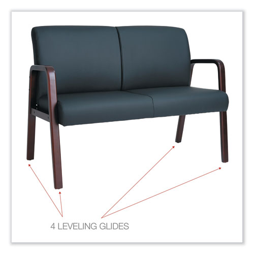 Welcome guests with a comfortable and stylish place to sit in your reception area, lobby, or office. The reception loveseat is a functional and economical choice for creating a reception area seating configuration. Constructed with an attractive and durable, mahogany wood frame with a smooth finish. Upholstered with soft bonded leather that’s easy-to-clean, making it ideal for waiting areas or lobbies. Supports up to 500 lbs.