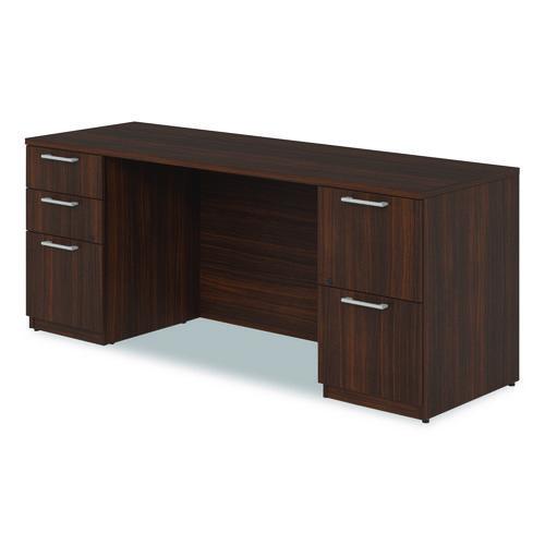 Product Details** Global Product Type Double Pedestal Credenza Desks Color Family Mahogany Pedestal Count 2 Pedestal Types Full-Height Drawer Configuration Left: Box/Box/File,Right: File/File Overall Width 72″ Top Material Melamine,Wood Color(s) Mahogany Depth (Max) 24″ Overall Height 29″ Number of Drawers 5 Edge Detail Profile Square Edge Base Material Melamine,Wood Top Thickness 1″ Series Name Alera® Seville Series Product Biodegradability Indicator N Product Biodegradability in Days 0 Product Compostability Indicator N Pre-Consumer Recycled Content Percent 0% Post-Consumer Recycled Content Percent 0% Total Recycled Content Percent 0% Country Of Origin CA Carton Weight 201 lbs. Carton Pack Quantity 1 EA Pack Quantity 0 UPC 042167003791 UNSPSC 56101701 Shipping Weight & Item Dimensions Weight 201 lbs. Length 72.441 in Height 31.102 in Width 25.197 in Warranty Manufacturer’s limited lifetime warranty.