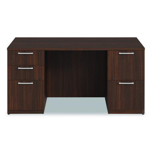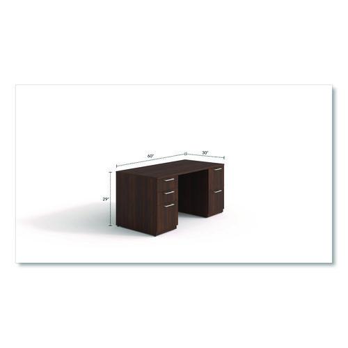 Product Details** Global Product Type Pedestal Office Desks Worksurface Shape Rectangular Color Family Mahogany Pedestal Count 2 Keyboard/Mouse Platform Indicator No CPU Holder/Platform Indicator No Number of Drawers 5 Series Name Alera® Seville Series Worksurface/Base Color Mahogany Worksurface Material Melamine,Wood Worksurface Width 60″ Worksurface Depth 30″ Worksurface Thickness 1″ Edge Detail Profile Square Edge Base Material Melamine,Wood Overall Width (Max) 60″ Overall Depth (Max) 30″ Overall Height (Max) 29″ Weight Capacity 500 lbs Pedestal Types Full-Height Drawer Type Left: Box/Box/File,Right: File/File Number of Shelves 0 Caster/Glide/Wheel (8) Glides Book Box Indicator No Product Biodegradability Indicator N Product Biodegradability in Days 0 Product Compostability Indicator N Pre-Consumer Recycled Content Percent 0% Post-Consumer Recycled Content Percent 0% Total Recycled Content Percent 0% Country Of Origin CA Carton Weight 221 lbs. Carton Pack Quantity 1 EA Pack Quantity 0 UPC 042167003524 UNSPSC 56101703 Shipping Weight & Item Dimensions Weight 221 lbs. Length 60.63 in Height 30.315 in Width 31.102 in Warranty Manufacturer’s limited lifetime warranty.