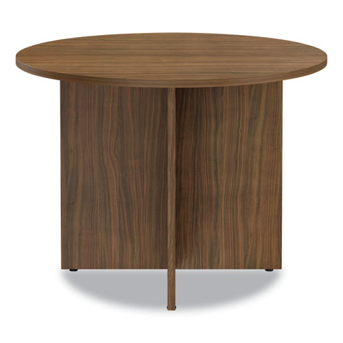 Product Details** Global Product Type Conference Tables Top Shape Round Color Family Walnut Height (Max) 29.5″ Base Color Modern Walnut Top Color Modern Walnut Top Thickness 1″ Diameter 42″ Top Material Woodgrain Laminate Base/Leg Material Woodgrain Laminate Base Type Straight Leg X-Base Edge Detail Profile 3 mm Edge Banding Caster/Glide/Wheel Glides For Use With Alera® Valencia™ Series Components Product Biodegradability Indicator N Product Biodegradability in Days 0 Product Compostability Indicator N Compliance Standards Meets or Exceeds ANSI/BIFMA Standards Pre-Consumer Recycled Content Percent 0% Post-Consumer Recycled Content Percent 0% Total Recycled Content Percent 0% Special Features 42″ Diameter-Seats 4 people. Country Of Origin CN Carton Weight 80 lbs. Carton Pack Quantity 1 EA Pack Quantity 0 UPC 042167304775 UNSPSC 56101706 Shipping Weight & Item Dimensions Weight 79.2 lbs. Length 44.69 in Height 4.72 in Width 44.69 in Warranty Manufacturer’s limited five-year warranty.