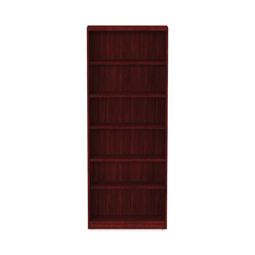 Product Details** Global Product Type Standard Multi-Shelf Bookcases Color Family Mahogany Material(s) Woodgrain Laminate Number of Shelves 6 Overall Height 80.25″ Overall Width 31.75″ Shelf Capacity (Weight) 150 lb Color(s) Mahogany Overall Depth 14″ Shelf Thickness 1″ Edge Detail Profile 3 mm Protective Edge Banding Series Name Alera® Valencia™ Series Product Biodegradability in Days 0 Compliance Standards Meets or Exceeds ANSI/BIFMA Standards Pre-Consumer Recycled Content Percent 0% Post-Consumer Recycled Content Percent 0% Total Recycled Content Percent 0% Country Of Origin CN Carton Weight 151 lbs. Carton Pack Quantity 1 EA Pack Quantity 0 UPC 042167301149 UNSPSC 56101507 Shipping Weight & Item Dimensions Weight 150.7 lbs. Length 81.3 in Height 5.51 in Width 32.87 in Warranty Manufacturer’s limited five-year warranty.