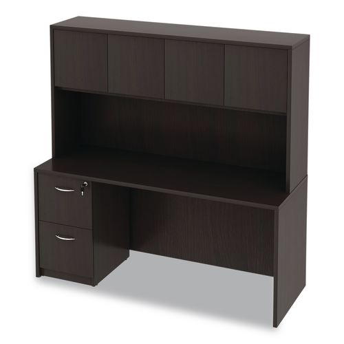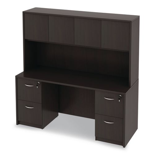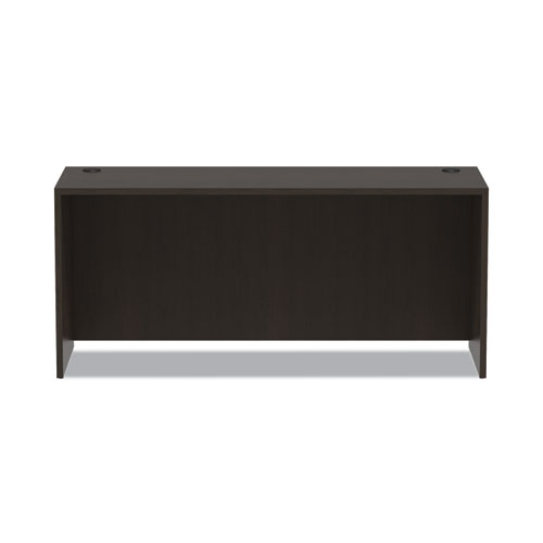 Product Details** Global Product Type Credenza Desk Shells Color Family Brown Overall Width 65″ Top Material Textured Woodgrain Laminate Color(s) Espresso Depth (Max) 23.63″ Overall Height 29.5″ Edge Detail Profile 3 mm Protective Edge Banding Base Material Textured Woodgrain Laminate Top Thickness 1″ For Use With Alera® Valencia™ Series File Pedestals, Open Storage Hutch, Desk Shells, Reversible Return/Bridge Shells and Center Drawer Series Name Alera® Valencia™ Series Product Biodegradability in Days 0 Compliance Standards Meets or Exceeds ANSI/BIFMA Standards Pre-Consumer Recycled Content Percent 0% Post-Consumer Recycled Content Percent 0% Total Recycled Content Percent 0% Country Of Origin CN Carton Weight 109 lbs. Carton Pack Quantity 1 EA Pack Quantity 0 UPC 042167304430 UNSPSC 56101701 Shipping Weight & Item Dimensions Weight 109 lbs. Length 67.5 in Height 4.72 in Width 29.92 in Warranty Manufacturer’s limited five-year warranty.