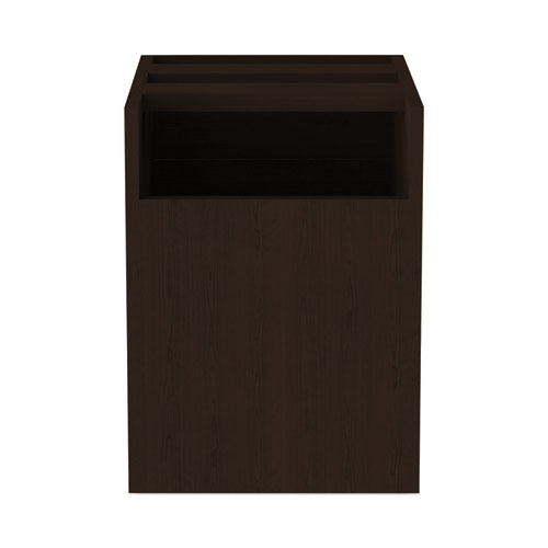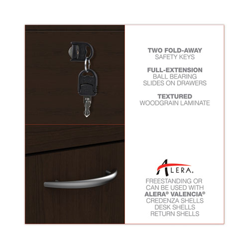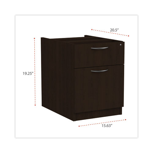 Product Details** Global Product Type Vertical Desk Pedestals Number of Drawers 2 Drawer Configuration Box/File Anti-Tip Mechanism Indicator No Color Family Brown Pedestal Sub-Type Indicator Yes Caster Indicator No Color(s) Espresso Pedestal Count 1 Pedestal Orientation Left/Right Pedestal Types Hanging: 3/4-Height Overall Width 15.63″ Overall Depth 20.5″ Overall Height 19.25″ Base Material Textured Woodgrain Laminate Top Material Textured Woodgrain Laminate Top Thickness 1″ Edge Detail Profile Bullnose Corner/Edge Protector 0.12″ Plastic T-Mold Band Glide/Feet Indicator Yes Glide/Feet Details Four Adjustable-Leveling Glides Document Size Accommodation Legal,Letter Series Name Alera® Valencia™ Series For Use With Alera® Valencia II Series Credenza Shells, Valencia II Series Desk Shells, Valencia II Series Return Shells Product Biodegradability Indicator N Product Biodegradability in Days 0 Product Compostability Indicator N Compliance Standards Meets or Exceeds ANSI/BIFMA Standards Pre-Consumer Recycled Content Percent 0% Post-Consumer Recycled Content Percent 0% Total Recycled Content Percent 0% Disclaimer Statement Workstation Tops/Shells and Pedestals sold and shipped separately—ORDER ALL PIECES TO COMPLETE WORKSTATION. Country Of Origin CN Carton Weight 52 lbs. Carton Pack Quantity 1 EA Pack Quantity 0 UPC 042167304348 UNSPSC 56101702 Shipping Weight & Item Dimensions Weight 51.7 lbs. Length 23.82 in Height 23.03 in Width 19.09 in Warranty Manufacturer’s limited five-year warranty.