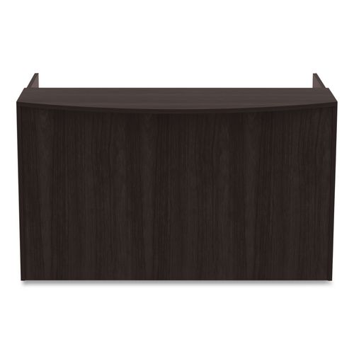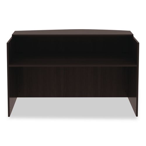 Product Details** Global Product Type Reception & Counter Desks Worksurface Shape Rectangular,Curved Front Color Family Brown Pedestal Count 0 Keyboard/Mouse Platform Indicator No CPU Holder/Platform Indicator No Number of Drawers 0 Series Name Alera® Valencia™ Series Worksurface/Base Color Espresso Worksurface Material Textured Woodgrain Laminate Worksurface Thickness 1″ Edge Detail Profile 3 mm Protective Edge Band Base Material Textured Woodgrain Laminate Overall Width (Max) 71″ Overall Depth (Min) 29.5″ Overall Depth (Max) 35.5″ Overall Height (Min) 29.5″ Overall Height (Max) 42.5″ Number of Shelves 0 Caster/Glide/Wheel Four Leveling Glides For Use With Alera® Valencia™ Series Reversible Reception Return and Alera® Tackboards Product Biodegradability in Days 0 Compliance Standards Meets or Exceeds ANSI/BIFMA Standards Pre-Consumer Recycled Content Percent 0% Post-Consumer Recycled Content Percent 0% Total Recycled Content Percent 0% Country Of Origin CN Carton Weight 202 lbs. Carton Pack Quantity 1 EA Pack Quantity 0 UPC 042167304577 UNSPSC 56101703 Shipping Weight & Item Dimensions Weight 201.5 lbs. Length 75.2 in Height 5.91 in Width 45.47 in Warranty Manufacturer’s limited five-year warranty.
