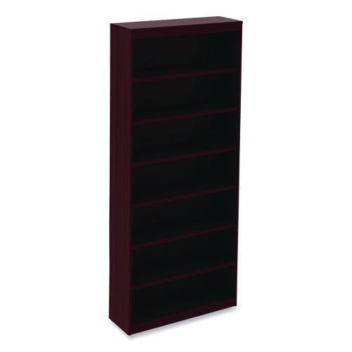 Product Details** Global Product Type Standard Multi-Shelf Bookcases Color Family Mahogany Material(s) Woodgrain Laminate Number of Shelves 7 Overall Height 83.86″ Overall Width 35.63″ Shelf Capacity (Weight) 90 lb Color(s) Mahogany Overall Depth 11.81″ Shelf Thickness 1″ Edge Detail Profile 3 mm Protective Edge Banding Series Name Alera® Valencia™ Series Product Biodegradability Indicator N Product Biodegradability in Days 0 Product Compostability Indicator N Compliance Standards Meets or Exceeds ANSI/BIFMA Standards Pre-Consumer Recycled Content Percent 0% Post-Consumer Recycled Content Percent 0% Total Recycled Content Percent 0% Country Of Origin CN Carton Weight 136 lbs. Carton Pack Quantity 1 EA Pack Quantity 0 UPC 042167001421 UNSPSC 56101507 Shipping Weight & Item Dimensions Weight 135.608 lbs. Length 86.42 in Height 4.53 in Width 39.37 in Warranty Manufacturer’s limited five-year warranty.