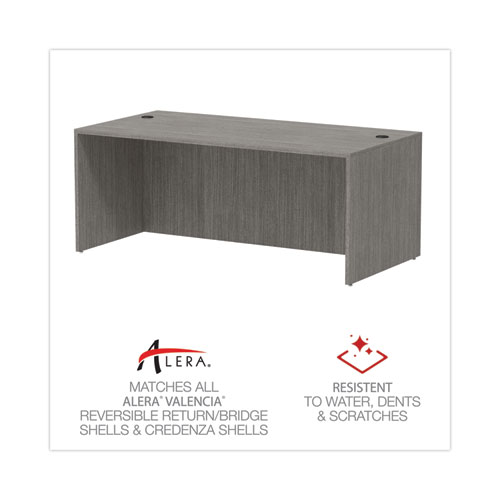 Product Details** Global Product Type Desk Shells Worksurface Shape Rectangular Color Family Gray Pedestal Count 0 Keyboard/Mouse Platform Indicator No CPU Holder/Platform Indicator No Number of Drawers 0 Series Name Alera® Valencia™ Series Worksurface/Base Color Gray Worksurface Material Woodgrain Laminate Worksurface Thickness 1″ Edge Detail Profile 3 mm Protective Edge Band Base Material Woodgrain Laminate Overall Width (Max) 71″ Overall Depth (Max) 35.5″ Overall Height (Max) 29.63″ Number of Shelves 0 Caster/Glide/Wheel Four Leveling Glides For Use With Alera® Valencia™ Series Reversible Return/Bridge Shell and Credenza Shell Product Biodegradability Indicator N Product Biodegradability in Days 0 Product Compostability Indicator N Compliance Standards Meets or Exceeds ANSI/BIFMA Standards Pre-Consumer Recycled Content Percent 0% Post-Consumer Recycled Content Percent 0% Total Recycled Content Percent 0% Country Of Origin CN Carton Weight 150 lbs. Carton Pack Quantity 1 EA Pack Quantity 0 UPC 042167000684 UNSPSC 56101703 Shipping Weight & Item Dimensions Weight 149.91 lbs. Length 73.43 in Height 38.2 in Width 4.72 in Warranty Manufacturer’s limited five-year warranty.