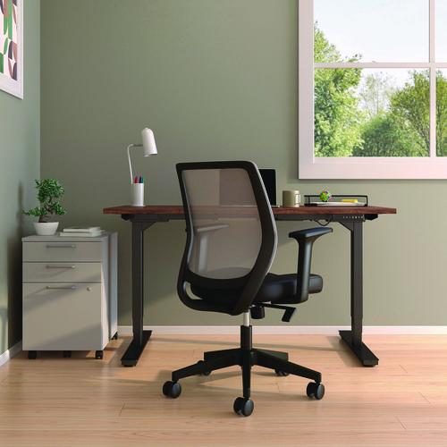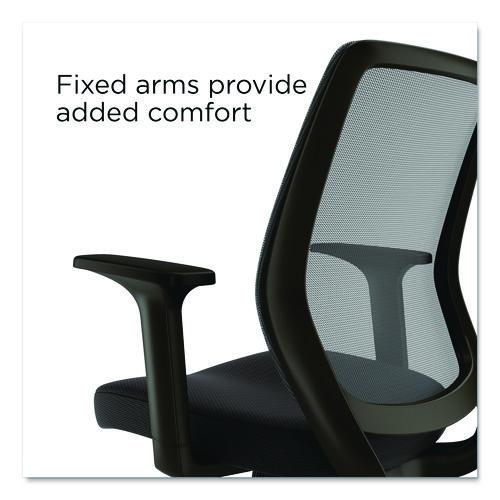 Product Details** Global Product Type Office Chairs Color Family Black Arms Included Yes Pneumatic Seat Height Adjustment Yes Tilt Tension/Tilt Lock Yes Integral Lumbar Support No Seat Surface Material Family Fabric Recommended Application Area(s) General Office & Task Seat Color Black Back Color Black Arm Type T-Bar Weight Capacity Supports Up to 275 lb Seat Glide Mechanism No Knee Tilt No Synchronized Knee Tilt No Dual-Action Tilt No Posture Lock No Multi-Task Control No Asynchronous Control No Dual-Clutch Posture Control No Variable Synchro-Tilt No Arm Adjustability Height Armrest Color Black Armrest Material Nylon Distance Between Arms 19.41″ Overall Width Maximum 27.09″ Overall Depth Maximum 26.18″ Overall Height Minimum 36.54″ Overall Height Maximum 40.28″ Seat Width Maximum 19.09″ Seat Depth Maximum 17.72″ Seat Height Minimum 17.09″ Seat Height Maximum 20.83″ Seat Surface Material Fabric Seat Fill Material Foam Back Width Maximum 17.91″ Back Height Maximum 20.47″ Back Surface Material Mesh Back Surface Material Family Mesh Base/Frame Color Black Base/Frame Material(s) Nylon Caster/Glide Details Five Nylon Casters Caster/Glide Surface Texture Hard Compatible Flooring Type(s) Carpet,Hard Floor Book Box Indicator No Weight (Fully Assembled) 28 lbs Product Biodegradability Indicator N Product Biodegradability in Days 0 Product Compostability Indicator N Compliance Standards Meets or Exceeds ANSI/BIFMA Standards Pre-Consumer Recycled Content Percent 0% Post-Consumer Recycled Content Percent 0% Total Recycled Content Percent 0% Country Of Origin VN Carton Weight 28 lbs. Carton Pack Quantity 1 EA Pack Quantity 0 UPC 042167001988 UNSPSC 56101720 Shipping Weight & Item Dimensions Weight 28.003 lbs. Length 24.803 in Height 12.598 in Width 23.425 in Warranty Manufacturer’s limited five-year warranty.