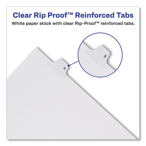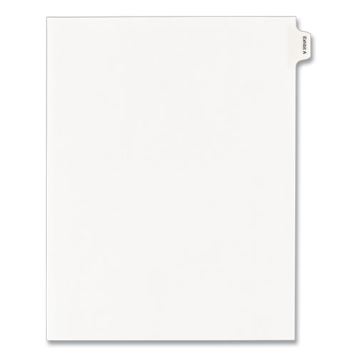 Product Details** Global Product Type Printed Exhibit Alpha Index Dividers Index Divider Style Legal Alpha Tab Orientation Side Tab Tab Style 26-Tab Color Family White Punched/Unpunched Unpunched Index Divider Size 11 x 8.5 For Use With Comb Binding Systems Index Divider Material(s) Heavyweight Ledger Paper Index Divider Color(s) White Tab Material(s) Heavyweight Ledger Paper Tab Color(s) White/Clear Lamination Legal Tab Style Allstate® Style Tab Title(s) Exhibit A Tab Title Color(s) Black Index Divider Form Quantity 25/Pack Product Biodegradability in Days 0 Green Information PVC-free. Pre-Consumer Recycled Content Percent 0% Post-Consumer Recycled Content Percent 0% Total Recycled Content Percent 0% Country Of Origin MX Carton Weight 9 lbs. Carton Pack Quantity 20 PK Pack Quantity 25 EA UPC 072782821074 UNSPSC 44122008 Shipping Weight & Item Dimensions Weight 0.4 lbs. Length 10.7 in Height 0.2 in Width 8 in
