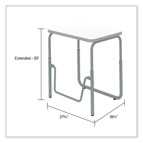 Product Details** Global Product Type Traditional Student Desks Worksurface Shape Rectangular Color Family White Pedestal Count 0 Keyboard/Mouse Platform Indicator No CPU Holder/Platform Indicator No Number of Drawers 0 Series Name Safco® AlphaBetter® 2.0 Worksurface/Base Color Dry Erase Worksurface Material Laminate Worksurface Width 27.75″ Worksurface Depth 19.75″ Worksurface Thickness 1″ Edge Detail Profile Straight Base Material Steel Overall Width (Max) 27.75″ Overall Depth (Max) 19.75″ Overall Height (Min) 22″ Overall Height (Max) 30″ Weight Capacity 200 lb Number of Shelves 0 Caster/Glide/Wheel Four Glides Book Box Indicator No Weight (Fully Assembled) 38 lb Product Biodegradability Indicator N Product Biodegradability in Days 0 Product Compostability Indicator N Pre-Consumer Recycled Content Percent 0% Post-Consumer Recycled Content Percent 0% Total Recycled Content Percent 0% Country Of Origin US Carton Weight 31 lbs. Carton Pack Quantity 1 EA Pack Quantity 0 UPC 073555122190 UNSPSC 56112108 Shipping Weight & Item Dimensions Weight 31 lbs. Length 30 in Height 19.75 in Width 27.75 in Warranty Manufacturer’s limited lifetime warranty.