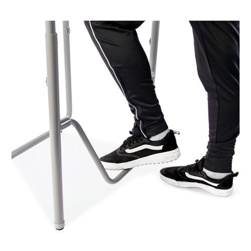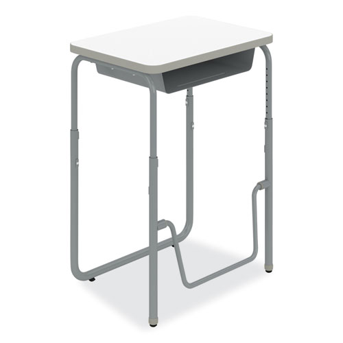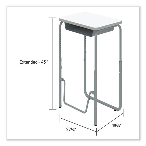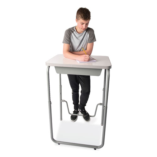 Encourage healthy movement and provide convenient storage with the AlphaBetter 2.0 height-adjustable student desk that features a high-pressure laminate top. This desk comfortably accommodates students of all sizes as they work or sketch ideas. A pendulum footrest allows students to redirect excess energy and continue to move, even as they sit, providing ergonomic support, increasing comfort, and promoting cardiovascular health. Great for boosting productivity and focus, this student desk has the added benefit of optional casters for better mobility throughout the classroom. Height adjusts accommodating students in 5th grade and up as well as adults at seated and standing heights.