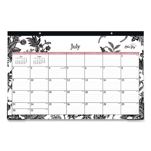 Turn any table or countertop into a proper worksurface with the Analeis Academic Year Desk Pad Calendar. Just place this sturdy calendar on your worksurface to reap the benefits. Attractive Analeis floral artwork enhances just about any environment. One month per page layout features a ruled-block format with Julian dates and all major holidays highlighted. Past- and future-month reference calendars help you keep track of what’s past and what’s to come. Perforated sheets for neat and easy tear-off.