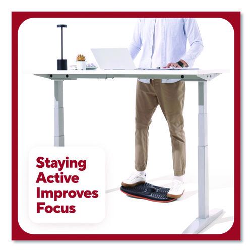 Perfect for working from home or at the office, this TRU RED Anti-Fatigue Balance Board can help you stay focused and alert. Continual movement is key for a healthy body and focused mind, and by engaging your muscles this portable board helps reduce fatigue, build strength, and improve balance. The easy-to-grab tab and rubber backing means it can move with you without scratching the floor. Try it at your standing desk as a new way to add variety and movement to your work setup.