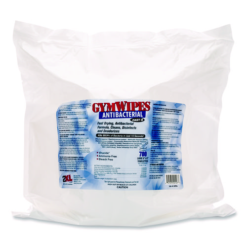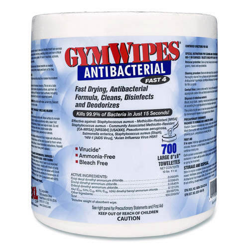 Antibacterial Gym Wipes Refill, 1-Ply, 6 x 8, Unscented, White, 700 Wipes/Pack, 4 Packs/Carton
