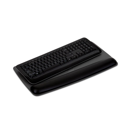 3M Gel Wrist Rest for Keyboard and Mouse has a tilt adjustable platform for comfort and keeps keyboard and mouse in place. The easy to clean leatherette cover has antimicrobial product protection which inhibits the growth of microorganisms, such as bacteria, on the product surface, that can cause stains, odors and product degradation. Includes a Precise Mouse Pad with battery saving design that mounts on the right or left side of the platform.