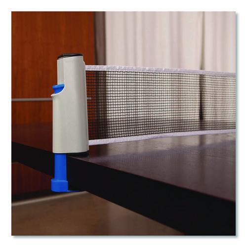 • Our innovative net post clamps onto table tops measuring up to 75″ across and 1.75″ thick so you can start a game any time.