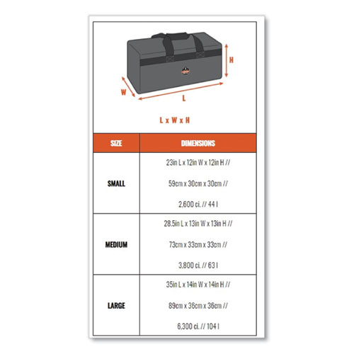 The Arsenal 5020P Standard Gear Duffel Bag is easy to carry and helps organize everything you need for the workday or the weekend. Whether you use it as a way to store your equipment on the job, a hunting bag to trek your gear through the woods, or as a carry-on duffel bag while traveling, you can rely on this utility duffel bag to house and protect your valuables. This lightweight, yet super durable gear bag is made with 600D polyester material to withstand wear and tear for long-lasting performance. Keep your essentials clean and dry with the reinforced water-resistant backing. Heavy-duty ribbed webbing handles and the adjustable padded shoulder straps. A large open main compartment fits all your gear with easy loading and unloading, so nothing is left behind. There are two accessory pockets with zippers on each side to hold smaller items.