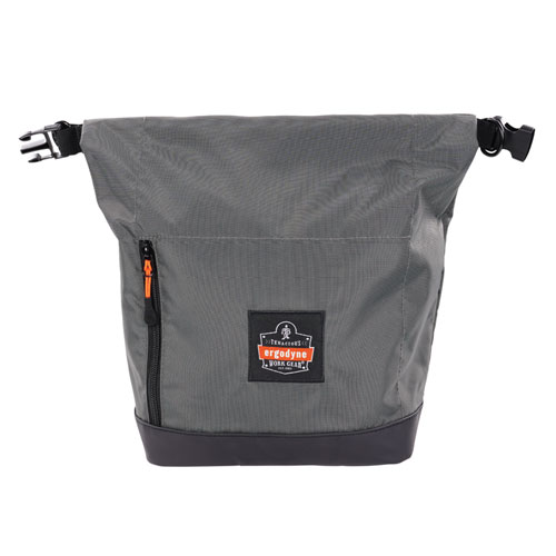 The Arsenal 5186 Half and Full Face Respirator Bag with Roll Top Closure is a secure and easy way to store critical and expensive PPE and SCBA gear. The wide roll top closure and bag accommodates any full or half face respirator. Much more than your standard issue bag, this respirator storage bag is built to protect with durable yet lightweight 420D nylon exterior with 200D nylon interior and a reinforced tarpaulin bottom. The roll top closure secures contents inside while the gray color increases visibility so you can grab your gear quickly on the go. To store, simply place the mask inside, roll the top down until secure and clip the buckle. The buckle closure can also serve as a handle for carrying your PPE storage bag, as well as a loop for attaching the bag to a belt or structure such as a handrail. Two exterior pockets give additional room for storing extra mask filters and accessories.