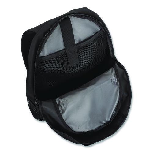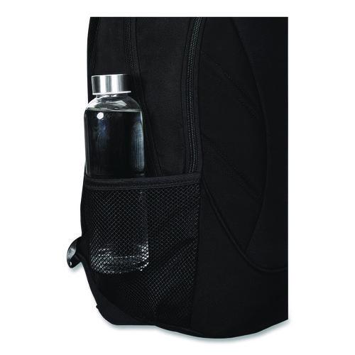Arrange supplies, personal electronics and other items neatly inside this laptop backpack. Zippered stash pocket offers quick access to keys, debit cards and other frequently used items, while the side-mount mesh bottle holders keep favorite beverages close at hand. Padded laptop compartment shields devices against bumps and drops. Spacious main compartment provides room for file folders, books and binders, so you can store all your reading materials in one location. Multiple accessory pockets hold pens, pencils and other small office supplies, making it easy to work on the road. Padded back and soft-touch neoprene handle make this backpack comfortable to carry.