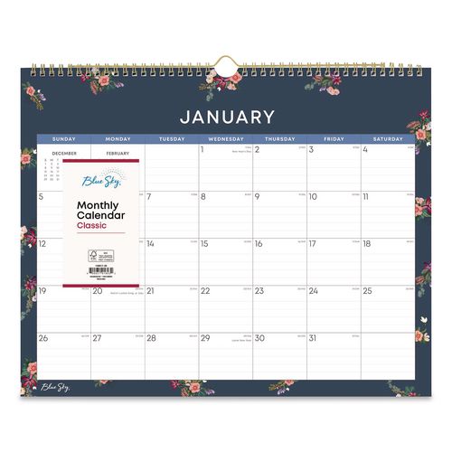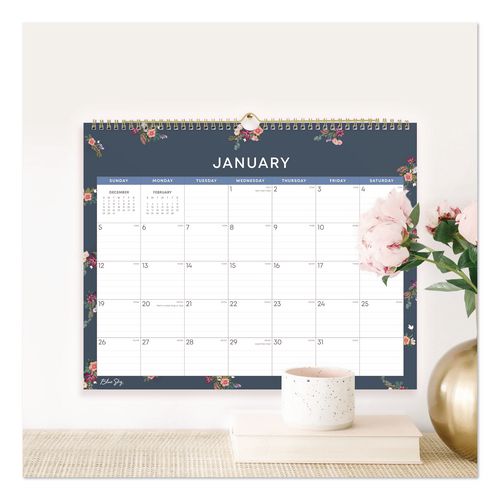 Featuring a minimalistic floral design that conveys a quiet sophistication with a gentle undertone of playfulness, the Blue Sky® Ashlyn Monthly Wall Calendar is a wonderful way to improve your space’s scenery while you keep track of your important events. Each month’s familiar layout includes large-font dates, plenty of space for notations, a count of days-past/days-remaining, all major holidays labeled and reference calendars to keep you on track. High-quality paper reduces the potential for ink-bleed. Printed using soy-based inks. Polished metal twin-wire binding with matching wall-hang loop.
