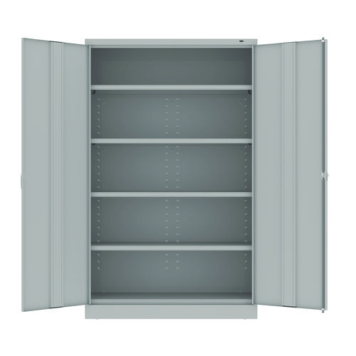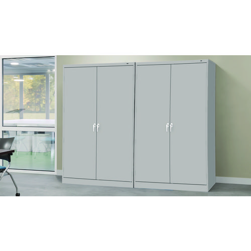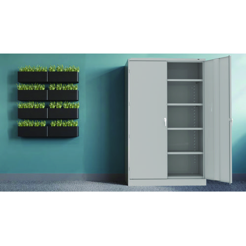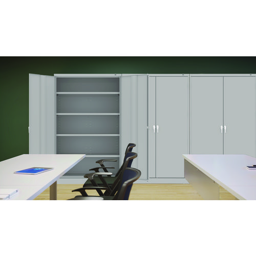 Product Details** Global Product Type Office & All-Purpose Storage Cabinets Color(s) Light Gray Number of Shelves 4 Shelf Capacity (Weight) 400 lbs Material(s) Heavy Gauge Welded Steel Overall Width 48″ Overall Depth 18″ Overall Height 78″ Number of Compartments 5 Door Quantity 2 Caster/Glide/Wheel Integrated Levelers Product Biodegradability in Days 0 Compliance Standards SCS Indoor Advantage Certified,SCS Indoor Advantage Gold Certified Pre-Consumer Recycled Content Percent 6% Post-Consumer Recycled Content Percent 19% Total Recycled Content Percent 25% Special Features 48w x 18d Cabinet Country Of Origin US Carton Weight 188 lbs. Carton Pack Quantity 1 EA Pack Quantity 0 UPC 044767129857 UNSPSC 56101530 Shipping Weight & Item Dimensions Weight 188 lbs. Length 18 in Height 78 in Width 48 in Warranty Manufacturer’s limited one-year warranty.