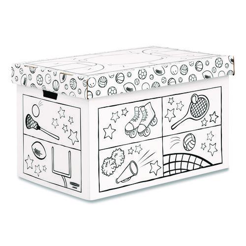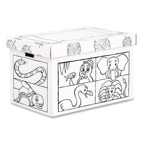Product Details** Global Product Type Toy Boxes & Bins Number of Compartments 1 Maximum Volume Range 31 to 40 gal Material Family Paperboard Color Family Multicolor Stackable Yes Capacity (Volume) 39.27 gal Capacity (Area) 5.25 cu ft Material(s) 32-ECT Corrugated Paperboard Width 28″ Depth 18″ Height 18″ Color(s) White/Black Closure Type Lift-Off Lid Box Style Easy Assembly For Use With Fellowes® 1230801, 1230802, 100016408 Product Biodegradability Indicator N Product Biodegradability in Days 0 Product Compostability Indicator N Compliance Standards F963 Standard Consumer Safety Specification Certified Pre-Consumer Recycled Content Percent 10% Post-Consumer Recycled Content Percent 50% Total Recycled Content Percent 60% Footnote 1 Age Recommendation: Ages 3 and Up Special Features Animals Design Country Of Origin US Carton Weight 5 lbs. Carton Pack Quantity 1 EA Pack Quantity 0 UPC 043859779642 UNSPSC 24121503 Shipping Weight & Item Dimensions Weight 5 lbs. Length 47 in Height 1.5 in Width 25.25 in