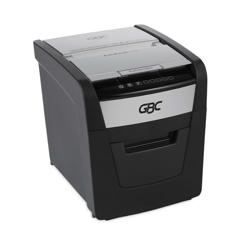 Spend less time shredding and more time on other tasks. GBC AutoFeed+ Shredders take the manual work out of shredding to make your day easier. Simply stack, shut and walk away! The GBC AutoFeed+ Shredder is fully-automatic, making it the perfect addition to your home office. Stack sheets in the feeder for automatic shredding or manually feed sheets. Super cross-cut (P-4) shred style is perfect for shredding confidential or personal information. Runs ultra-quietly to help minimize noisy disruptions in your home office. Powerful induction motor for minutes of continuous run time and large bin lets you shred longer without stopping. Auto forward and reverse functions help prevent jams. Auto shreds documents, paper clips and staples, while credit cards must be manually inserted.