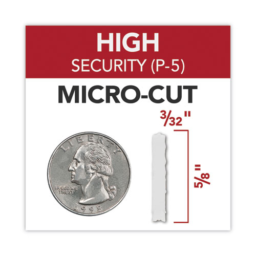 Spend less time shredding and more time on other tasks. GBC AutoFeed+ Shredders take the manual work out of shredding to make your day easier. Simply stack, shut and walk away! For your biggest shredding jobs, choose the fully-automatic GBC AutoFeed+ Shredder. Stack up to 750 sheets in the feeder for automatic shredding or manually feed up to 15 sheets at once. Micro-cut (P-5) shred style safely shreds confidential or sensitive documents. Runs ultra-quietly to help minimize noisy disruptions in large offices. Powerful induction motor with 240-minute continuous run time and oversized 37 gal bin let you shred longer without stopping. A lockable feeding tray provides additional security to your shredded documents. Auto shreds documents, paper clips and staples, while credit cards must be manually inserted.