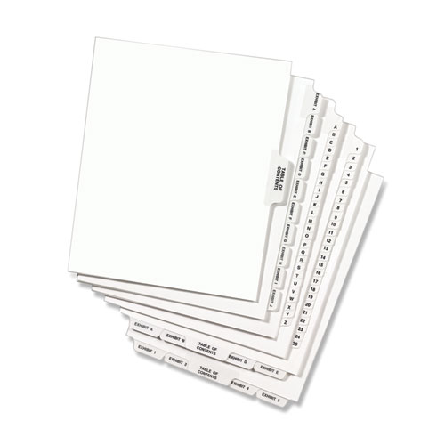 Product Details** Global Product Type Printed Exhibit Alpha Index Dividers Index Divider Style Legal Alpha Tab Orientation Bottom Tab Tab Style 26-Tab Color Family White Punched/Unpunched Unpunched Index Divider Size 11 x 8.5 For Use With Comb Binding Systems Index Divider Material(s) Heavyweight Ledger Paper Index Divider Color(s) White Tab Material(s) Heavyweight Ledger Paper Tab Color(s) White/Clear Lamination Legal Tab Style Avery® Style Tab Title(s) Exhibit J Tab Title Color(s) Black Index Divider Form Quantity 25/Pack Product Biodegradability in Days 0 Green Information PVC-free. Pre-Consumer Recycled Content Percent 0% Post-Consumer Recycled Content Percent 0% Total Recycled Content Percent 0% Country Of Origin MX Carton Weight 10 lbs. Carton Pack Quantity 20 PK Pack Quantity 25 EA UPC 072782119492 UNSPSC 44122008 Shipping Weight & Item Dimensions Weight 0.432 lbs. Length 11.2 in Height 0.19 in Width 8.56 in