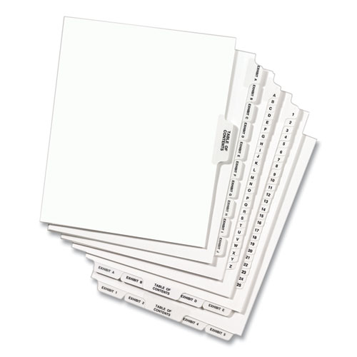 Product Details** Global Product Type Printed Exhibit Alpha Index Dividers Index Divider Style Legal Alpha Tab Orientation Side Tab Tab Style 26-Tab Color Family White Punched/Unpunched Unpunched Index Divider Size 11 x 8.5 For Use With Comb Binding Systems Index Divider Material(s) Heavyweight Ledger Paper Index Divider Color(s) White Tab Material(s) Heavyweight Ledger Paper Tab Color(s) White/Clear Lamination Legal Tab Style Avery® Style Tab Title(s) Exhibit C Tab Title Color(s) Black Index Divider Form Quantity 25/Pack Product Biodegradability in Days 0 Green Information PVC-free. Pre-Consumer Recycled Content Percent 0% Post-Consumer Recycled Content Percent 0% Total Recycled Content Percent 0% Country Of Origin MX Carton Weight 11 lbs. Carton Pack Quantity 20 PK Pack Quantity 25 EA UPC 072782013738 UNSPSC 44122008 Shipping Weight & Item Dimensions Weight 0.414 lbs. Length 11.9 in Height 0.9 in Width 8.8 in